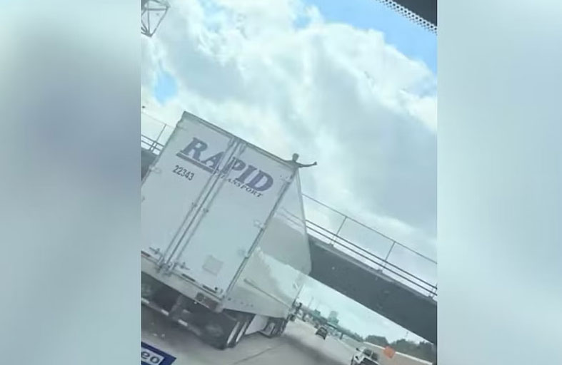 وأوضحت الشبكة أن صورا التقطها أحد السائقين في ذلك الشارع أظهرت الرجل وهو يقف على الشاحنة ويتفادى أحد الجسور العلوية قبل أن ينهض مرة أخرى ويحرك وركيه وذراعيه فيما بدى أنه كان ينظر إلى اليمين عندما ضربه جسر ثانٍ.