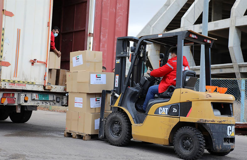 وصول قافلة مساعدات برية من الهلال الأحمر الإماراتي إلى دمشق للحد من تفشي كوفيد- 19