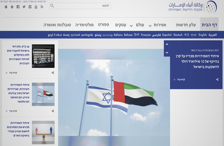 وكالة أنباء الإمارات تطلق خدمتها الإخبارية الجديدة باللغة العبرية
