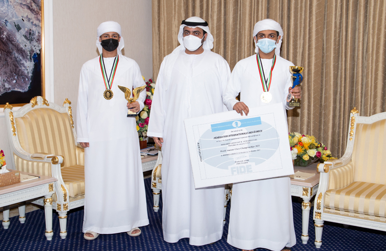 ولي عهد الفجيرة يستقبل الفائز ببرونزية العالم للشطرنج للمصنفين تحت 2000 نقطة