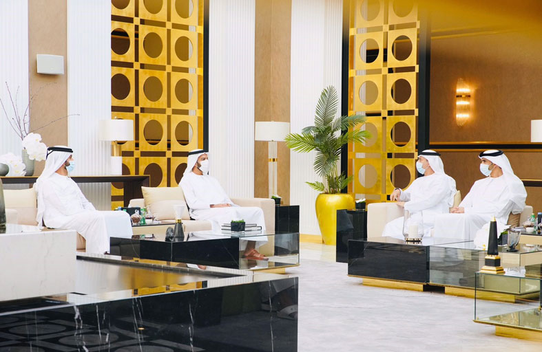 استقبل سمو الشيخ محمد بن سعود بن صقر القاسمي ولي عهد رأس الخيمة امس بمجلس سموه بمدينة صقر بن محمد كلا من معالي عبدالله بن طوق المري وزير الاقتصاد ومعالي الدكتور أحمد بن عبد الله حميد بالهول الفلاسي وزير دولة لريادة الأعمال والمشاريع الصغيرة والمتوسطة ومعالي الدكتور ثاني بن أحمد الزيودي وزير دولة للتجارة الخارجية.