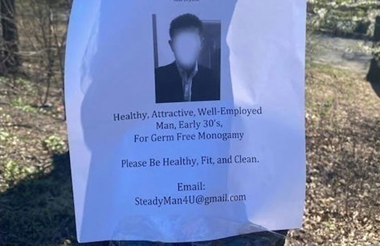وقد وزّع الرجل الكثير من المنشورات في العديد من الأماكن العامة بمدينة نيويورك، أهمها حديقة سنترال بارك العامة، وساحة تايمز سكوير، ومنطقة بيغ آبل. وقال الرجل في منشوراته، إنه يبحث عن امرأة تتمتع بالنظافة الشخصية والصحة الجيدة، وأن تكون خالية من الجراثيم والفيروسات.