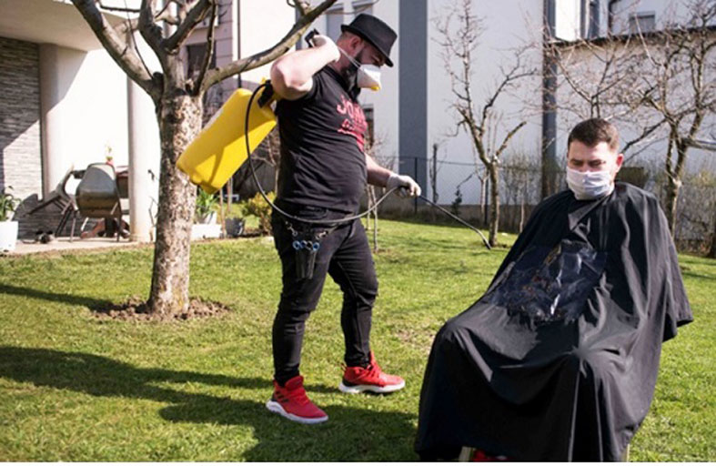 يتحدى الحظر ويقص شعر زبائنه في منازلهم