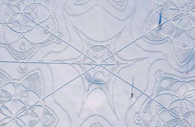 وتنكشف الرسمة، التي وقعها يان بيكو في دائرة قطرها 160 مترا، من المساحة المكسوة بالثلج من علو، وقد رسمها في عطلة نهاية الأسبوع الماضي، لتكون أكبر رسمة في الثلج في هذا البلد الواقع في شمال أوروبا.