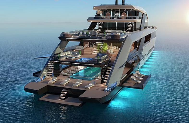 توصل مهندس شغوف باليخوت إلى تصميم يخت فاخر مذهل ينضح بالفخامة والرفاهية المناسبة للأشخاص الأثرياء الذين يرغبون بالقيام برحلات بحرية فاخرة ومميزة.