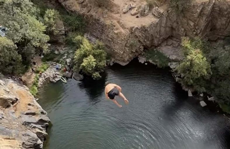 في لحظات تحبس الأنفاس، نجح فرنسي عشريني بتحطيمه الرقم القياسي العالمي في "الغوص حتى الموت"، بعد قفزه من منحدر صخري يبلغ ارتفاعه 44 متراً، دون اتخاذ أي وسيلة من وسائل الحماية. سجل الرقم القياسي العالمي السابق للغوص حتى الموت، السويسري لوسيان تشارلون قافزاً عن ارتفاع 41.7 متراً في أغسطس -آب الماضي. في مقطع فيديو نشره عبر حسابه على إنستغرام، وثق المغامر جيراردو "22 عاماً" قفزته من شلال "لا سيمبارا" بالقرب من بلدة ألدياكويمادا في وسط إسبانيا، في ظروف شديدة الرياح، حيث يظهر في بداية الفيديو، وافقاً على قمة الجرف الصخري وأسلفه بحيرة المياه، ويتحرك إلى الامام والوراء، ثم يقفز بسرعة حوالي 106 كلم في الساعة. وأرفق الفيديو القصير بتعليق كشف فيه أن الانضمام إلى نادي القفز من ارتفاع 40 متراً كان هدفي منذ آخر رقم قياسي عالمي سجله عندما قفز من ارتفاع 36 متراً. وتحدث الفرنسي من مدينة بوردو عن كواليس القفزة بالقول إنه كان يخطط لها منذ 8 أشهر، واعداً بنشر فيديو ثاني على يوتيوب يوثق من خلاله رحلة تحطيم الرقم القياسي الجديد ومواجهته المصاعب، خاصة الرياح التي كانت عاصفة جداً في ذلك اليوم.