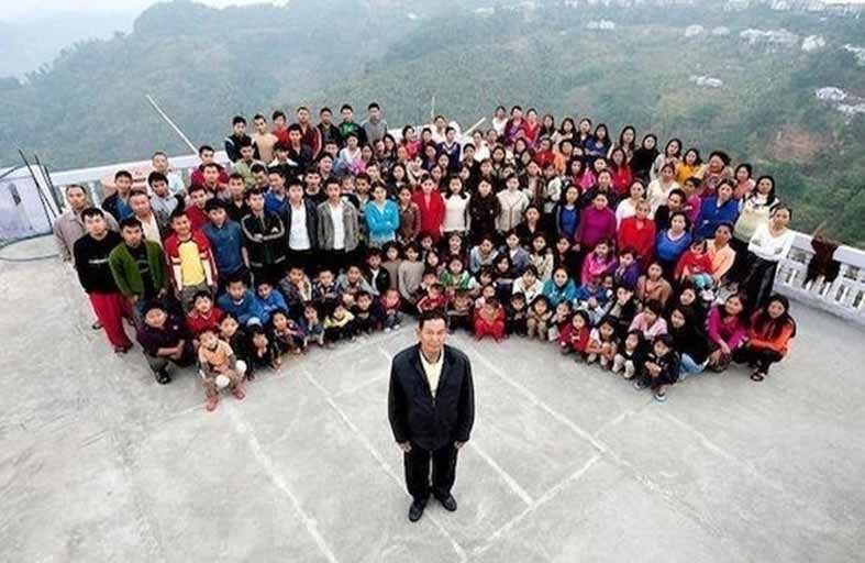 تصدر رجل هندي في العقد السابع من عمره عناوين الصحف المحلية والعالمية، بعدما أصبح صاحب أكبر عائلة في العالم. وتعيش عائلة زيونا المكونة من 180 شخصاً، في قصر ضخم يتألف من أربعة طوابق ويضم 100 غرفة. ويمتلك زيونا، وهو زعيم طائفة دينية تشكلت في عام 1942، 39 زوجة، و14 كنّة و33 حفيداً.