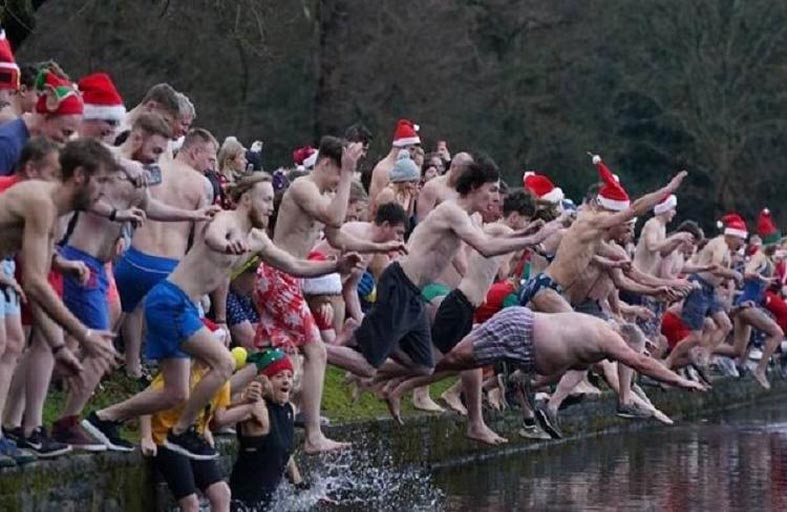 وخاض أعضاء النادي في مياه تصل برودتها إلى مستوى درجتين عشية عيد الميلاد، وهم يرددون الأغاني ويرتدون زي سانتا كلوز، خلال هذه المناسبة السنوية.