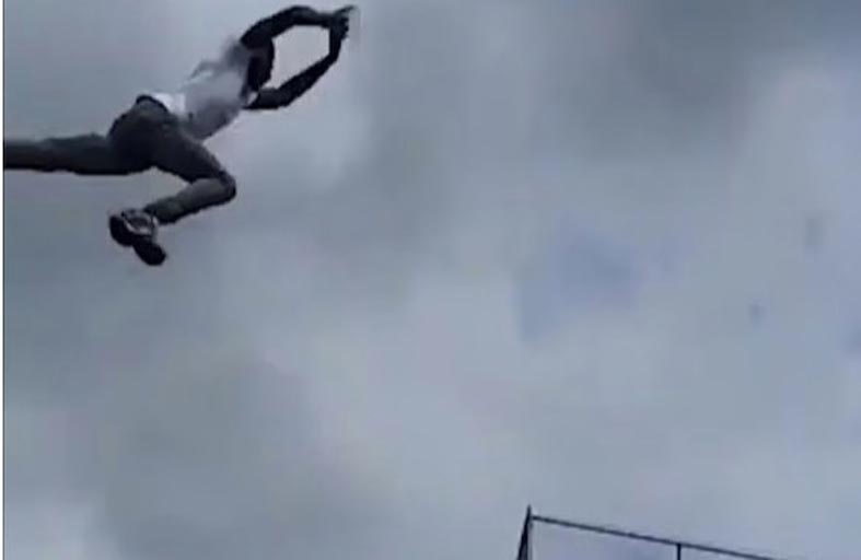 قفز رجل من منطقة كوينز بمدينة نيويورك، متحديًا الموت من منصة مرتفعة لمترو الأنفاق إلى سطح متجر مجاور بينما كان يحاول الفرار من رجال الشرطة.