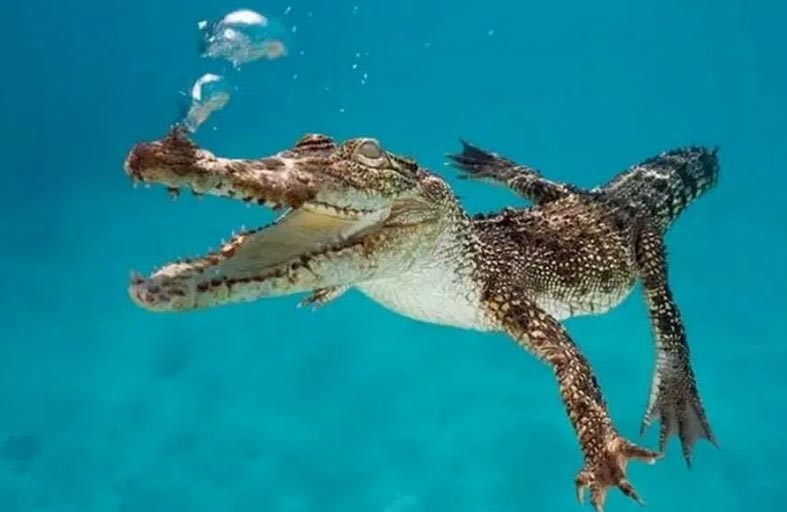ينجو بأعجوبة بإخراج رأسه من بين فكي تمساح