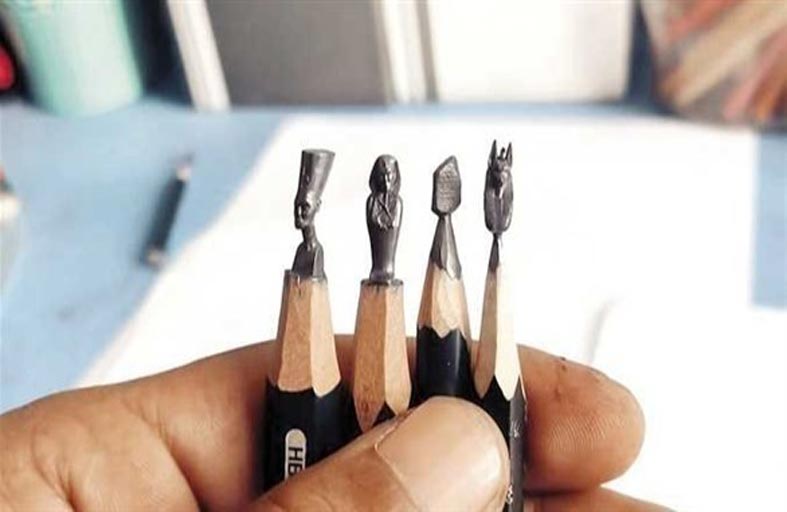 ينحت تماثيل فرعونية على سنون أقلام الرصاص