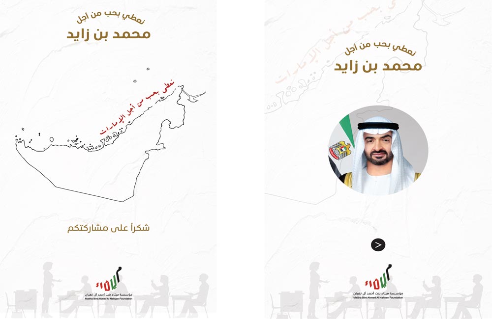 أطلقت مؤسسة ميثاء بنت أحمد آل نهيان للمبادرات المجتمعية والثقافية، مبادرة «نعطي بحب من أجل محمد بن زايد»، وذلك خلال مشاركتها في النسخة التاسعة من معرض واجهة التعليم ومؤتمر شباب الشرق الأوسط الذي تمتد فعالياته على مدى يومين في مركز أبوظبي الوطني للمعارض بدءا من امس الثلاثاء، بمشاركات محلية ودولية واسعة من المؤسسات التعليمية والأكاديمية.