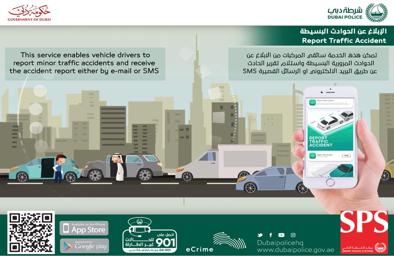 وأشار إلى أن استخدام خدمة "الإبلاغ عن الحوادث المرورية البسيطة" عبر تطبيق شرطة دبي سهل وبسيط، حيث يتطلب الأمر من السائق الدخول إلى الخدمة والضغط على زر "تبليغ عن حادث" ثم إدخال البيانات المطلوبة كبيانات المركبة ورقم رخص القيادة لطرفي الحادث ثم تصوير السيارتين، وتسجيل الطريقة التي يرغبان فيها بالحصول على تقرير الحادث. وتابع العميد الرزوقي "أن طرفي الحادث يستطيعان إرسال صور للأضرار في المركبتين، مع بيانات كل سائق، وأنه فور دخول أي منهما إلى التطبيق يتم تحديد موقعه عبر الأقمار الاصطناعية ثم تُرسل البيانات التي أدخلاها إلى مركز الشرطة القريب حسب منطقة الاختصاص، والذي يراجع بدوره البيانات ويرسل تقرير الحادث إلى بريد الطرفين ثم بإمكانهما إرسال التقرير إلى شركات التأمين".