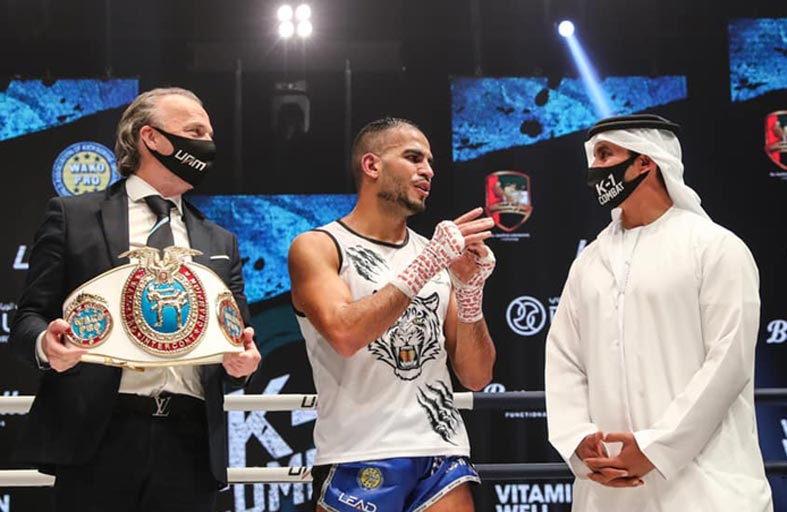 وقال - قد حقق اتحاد الإمارات للمواي تاي والكيك بوكسينج العديد من الإنجازات التي ستبقى في ذاكرة الأبطال إلى مدى بعيد، والذين كسبوا التحدي ، والتي كان آخرها تتويج لاعب منتخبنا الوطني إلياس حبيب علي بحزام ( بطولة الواكو ) بعد مواجهة قوية جمعته مع البطل الأيرلندي داميان داركر مسكا للبطولة التي أقيمت  دون جمهور تطبيقا للبرتوكول الصحي ،ووفقا للتوجيهات العليا وذلك بحضور سعادة روي بيكر رئيس الاتحاد الدولي للكيك بوكسينج الذي شارك في التتويج .