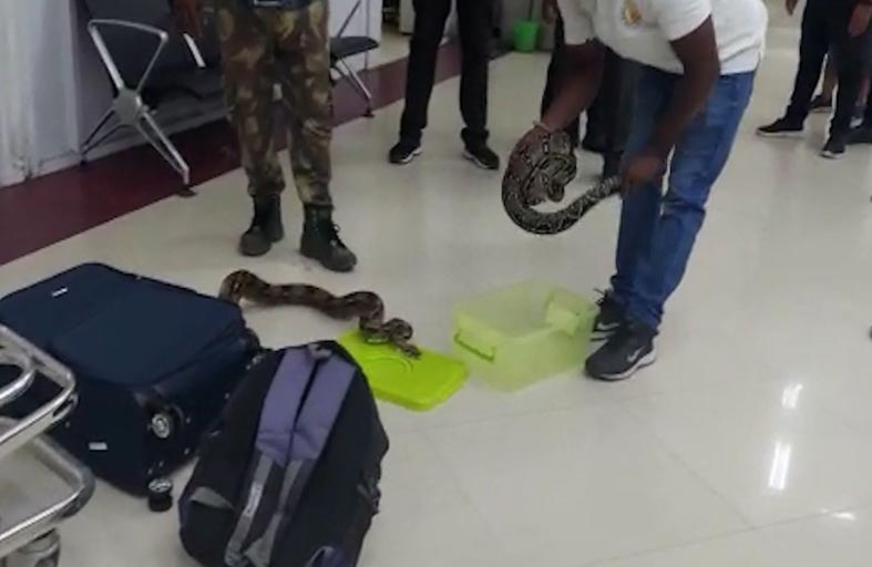 نشر المجلس المركزي للضرائب غير المباشرة والجمارك في الهند صوراً ومقاطع فيديو على وسائل التواصل الاجتماعي، أظهرت العديد من الثعابين الكبيرة معبأة في حاويات بلاستيكية شفافة، بعد أن تمت مصادرتها من أمتعة مسافرة. وعثر موظفو الجمارك في مطار تشيناي على 22 ثعباناً من مختلف الأنواع وحرباء في أمتعة أحد الركاب. حيث وجد المسؤولون هذه الزواحف داخل الأمتعة الخاصة بمسافرة سافرت من كوالالمبور إلى الهند. وأضاف المسؤولون أنهم اكتشفوا الحيوانات أثناء قيامهم بتفتيش أمتعة المسافرة أثناء مرورها عبر الجمارك في مطار تشيناي. وأوضح موظفو الجمارك أن المسافرة نقلت الحرباء والثعابين إلى تشيناي من ماليزيا في حقائبها التي تم فحصها، والتي تمت مصادرتها في نهاية المطاف بموجب قانون حماية الحياة البرية الهندي الذي يهدف إلى "توفير الحماية للحيوانات البرية، وضمان الأمن البيئي للبلاد". يذكر أن حادثاً مماثلاً وقع أيضاً في يناير -كانون الثاني ، عندما اعترض موظفو الجمارك مسافراً وعثروا على أمتعة تحتوي على 45 ثعبانا وسلاحف وقرود. وتم ترحيل تلك الزواحف إلى بانكوك، بحسب صحيفة تايمز أوف إنديا.