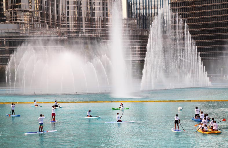 • «نحن نجدف من أجل دبي» أمام برج خليفة وفي بحيرة «سد حتا»