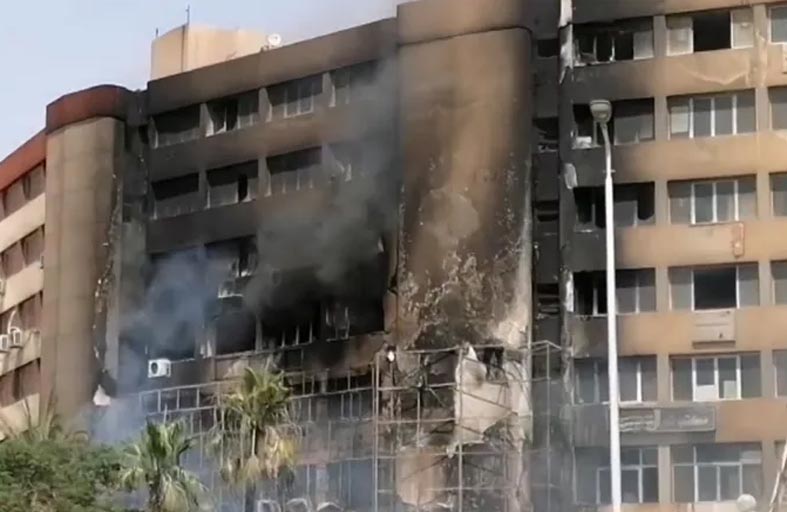 وكان حريق ضخم قد نشب الاثنين في مبنى جهاز 15 مايو المكون من 7 طوابق، ويضم إدارات عدة مصالح حكومية بالمدينة، مما أدى إلى إصابة 24 شخصا وتدمير كامل لبعض الطوابق بالمبنى. وكشف عضو مجلس أمناء جهاز مدينة 15 مايو نادي خليفة، لموقع "سكاي نيوز عربية"، أن: