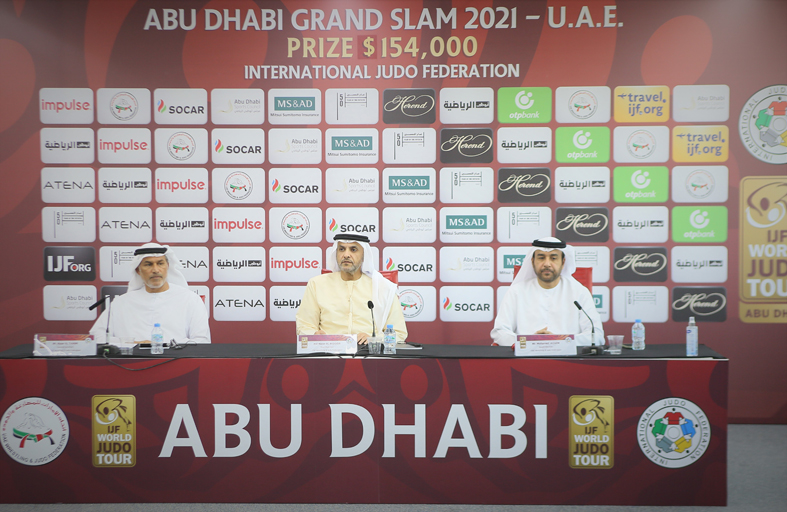 عقد ظهر أمس بفندق ملينيوم الوحدة وصالة« جوجيتسو أرينا » بمدينة زايد الرياضية في أبوظبي الاجتماع الفني للمنتخبات المشاركة في البطولة ومراسم  قرعة بطولة أبوظبي(الخمسين) جراند سلام للجودو» لعام 2021 والتي بدأت بكلمة سعادة ناصر خليفة البدور نائب رئيس اتحاد الإمارات للمصارعة والجودو والتي نقل فيها تحيات وترحيب سعادة محمد بن ثعلوب الدرعي رئيس اللجنة المنظمة للبطولة وذلك بحضور ناصر التميمي أمين السر العام للاتحاد مدير البطولة ومحمد جاسم أمين السر المساعد، ورحب البدور بالأشقاء والأصدقاء في بلدهم الثاني متمنيا لهم طيب الإقامة وللبطولة التي تتزامن مع احتفالات البلاد باليوم الوطني واليوبيل الذهبي ،فيما مثل الاتحاد الدولي للجودو السيد فلاد مارتيسنو المدير التنفيذي وارامن باقدراسوف ممثل الحكام وفلاديمير بارتا رئيس لجنة التنظيم  الذي أشادوا باستعدادات الإمارات للبطولة التي تشهد مشاركة 41  دولة من كافه القارات ، مؤكدا على تميز البطولات التي تستضيفها أبو ظبي وتوفر لها كافة متطلبات النجاح متمنيا طيب الإقامة للجميع وللمنتخبات المشاركة التوفيق واطلعوا الجميع على التعليمات العامة.. بعدها تم إجراء القرعة التي أسفرت عن لقاء لاعب منتخبنا احمد النقبي مع لاعب الصين تايبيه يانغ في وزن تحت 60 كجم بعد ظهر اليوم ،وفي نفس الوزن يلعب احمد جاسم الثميري مع الأوكراني فيرديبا .. ويلعب ضمن جولة اليوم راشد الحوسني في وزن تحت 66 مع الكازاخستاني سالامات يالوو.