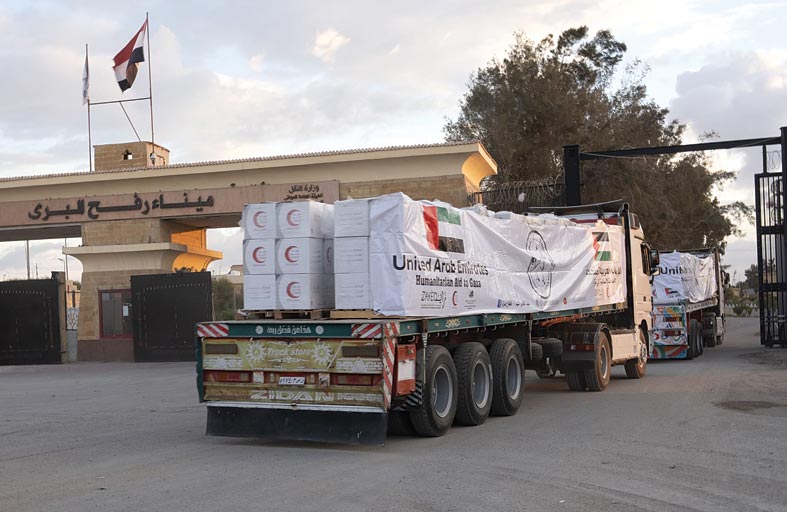 عبرت 5 قوافل محملة بمساعدات إنسانية إماراتية متنوعة خلال هذا الأسبوع إلى قطاع غزة، عبر معبر رفح المصرية، وذلك في إطار جهود دولة الإمارات لدعم وإغاثة الأشقاء الفلسطينيين خلال الظروف الراهنة وضمن "عملية الفارس الشهم 3" الإنسانية.