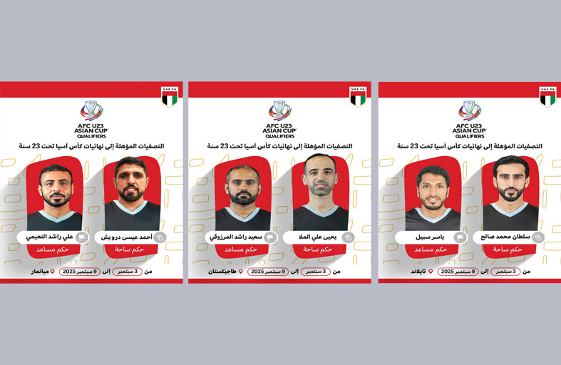 6 من قضاة ملاعب الإمارات يشاركون في تصفيات «آسيا تحت 23 عاما»