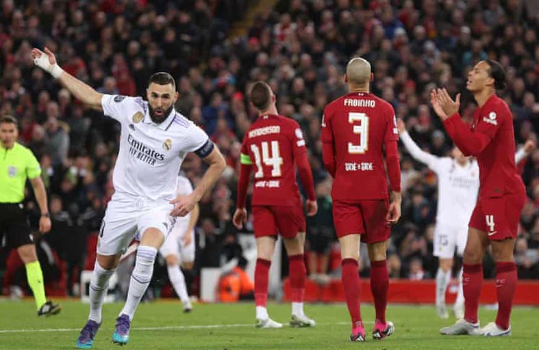 ومن خلال هدفيه في مرمى ليفربول أمس الأول، أصبح الفرنسي كريم بنزيما مهاجم ريال مدريد أكثر لاعب في تاريخ البطولات الأوروبية يهز شباك ليفربول، وذلك برصيد 6 أهداف من بينها 4 أهداف على ملعب ليفربول.