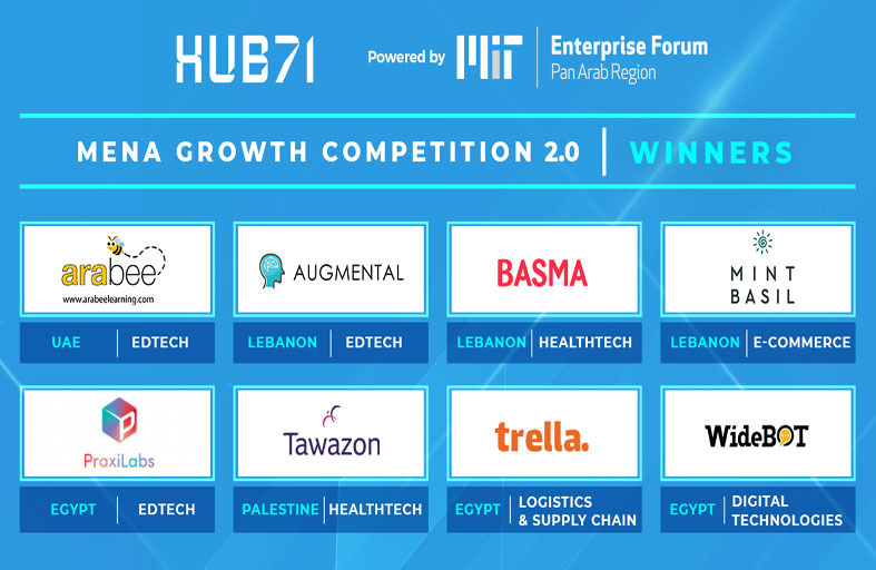 وتوّجت المسابقة بيوم العروض التقديمية عبر الإنترنت الذي جرى في الأول من يونيو 2020 حيث اختارت لجنة التحكيم ثماني فرق فائزة من بين المتأهلين العشرة إلى الدور النهائي من النسخة الثانية لمسابقة Hub71 للتوسّع في الشرق الأوسط وأفريقيا.. وهم كالتالي : “براكسي لابس» PraxiLabs و “بسمة» Basma و”تريلّا» Trella و”أوغمنتل» Augmental و”توازن» Tawazon و”عربي» Arabee و”وايد بوت» Widebot و Mint Basil Market «. وقالت مايا رحال، المدير العام لمنتدى MIT لريادة الأعمال في العالم العربي إنّ الشركات المستفيدة من مسابقة الشركات العربية الناشئة تثبت يوماً بعد يوم أنّها قادرة أن تتكيّف مع التغييرات، وأنّها صامدة في وجه أي عقبة تعترض طريقها. وقد شكّلت النسخة الثانية الرقمية لمسابقةHub71 للنمو في الشرق الأوسط وأفريقيا اختباراً ناجحاً حقيقياً لنا جميعاً.
