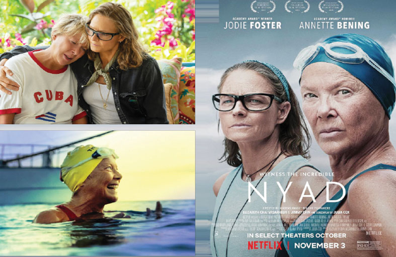 "نَيَاد" (2023)، لإليزابيت تشاي فِسارْهالي وجيمي تشين (تشين مستشكف يعمل في "ناشيونال جيوغرافيك")، يروي فترةً واحدة من السيرتين الحياتية والمهنية لديانا نَيَاد (1949)، السبّاحة الأميركية، التي ستكون أول من يسبح مسافة 161 كلم، تفصل كوبا عن فلوريدا ("كي وست" تحديداً)، وفي بعض تلك المسافة قناديل بحرٍ سامّة، ومياه موبوءة، وأسماك قرش. فترة تشهد تدريبات مكثّفة، ومحاولات فاشلة، وتوتّرات قاسية، وصدامات عدّة، قبل تمكّنها، في 2 سبتمبر/أيلول 2013، من تحقيق ما تصبو إليه منذ بلوغها 20 عاماً. أي بعد 11 يوماً فقط على احتفالها بعيد ميلادها الـ64 (مواليد 22 أغسطس/آب 1949).