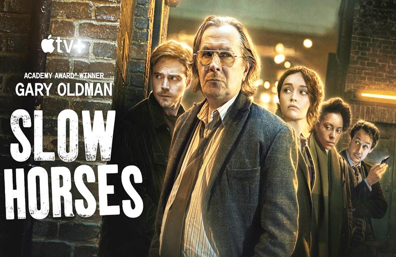 Slow Horses، الذي عرضته منصة "أبل تي في بلس" في 24 حلقة خلال 4 مواسم، يستند إلى سلسلة روايات ميك هيرون بعنوان The Slough House، وأخرجه جيمس هاوز، أحداثه تدور في عالم جهاز الاستخبارات البريطانية الشهير بـ MI5، ولكنه بعيد كل البعد عن القصص المعتادة التي تملأ دراما الاستخبارات والتجسس، مثل مسلسلات 24 أو Homeland، هو أقرب إلى الأعمال التي تركز على الجانب الإنساني للجاسوسية، مثل فيلم Tinker Tailor Soldier Spy، حيث الشخصية هي الأساس وليس المهمة.